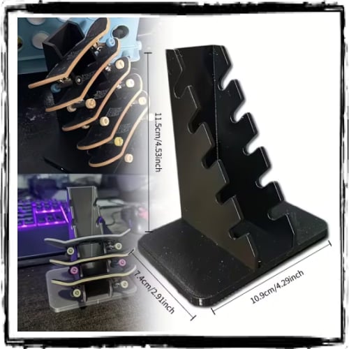 Heavy-Duty Plastic Finger Skateboard Storage Stand with Sturdy Base & Vertical Space.